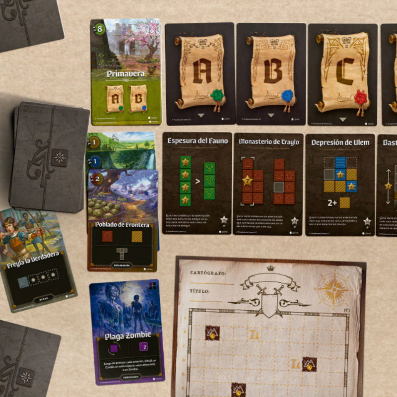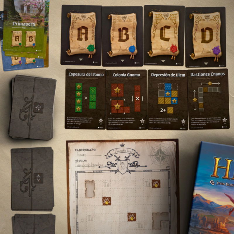 * ¿Qué es "roll & write"? Sale una figura en una carta, y TODOS los jugadores tienen que intentar ubicarla, dibujándola, en sus mapas. Como un Tetris apaisado en el que tenés un poco más de tiempo para pensar (hasta que los demás jugadores te miren impacientes y amenazantes, al menos).