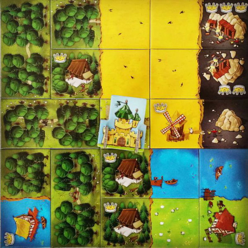 A lo largo de una partida los jugadores van a ir eligiendo fichas de dominó que en lugar de números tienen diversos tipos de terrenos y a veces tesoros. Las fichas que elijas muchas veces beneficiándote y otras para quitárselas a un rival y cómo las ubiques en tu reino van a hacer la clave de la Victoria.