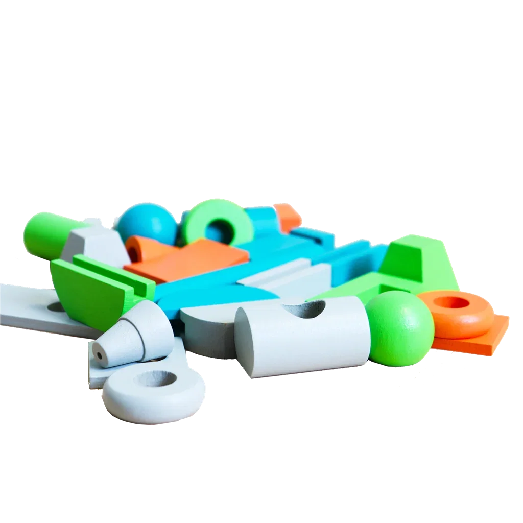 66 Piezas de madera, 81 Cartas, 1 Cinta métrica, 95 Fichas, 1 Reglamento