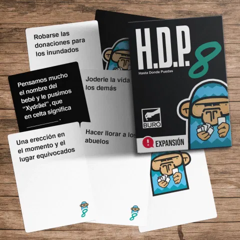 El HDP8 es una expansión que agrega 10 cartas negras (las que tienen consignas) y 40 cartas blancas (las respuestas) a uno de nuestros juegos más vendidos de todos los tiempos para seguir renovando y actualizando este clásico de previas.