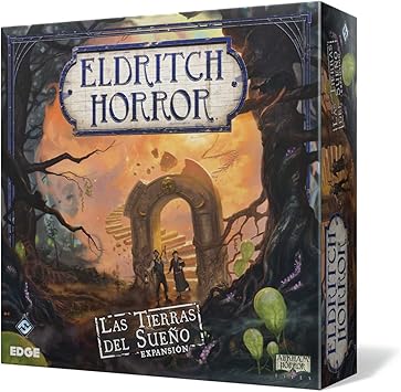 Desciende a un mundo de sueños y esplendor con Las Tierras del Sueño, la última expansión de Eldritch Horror. Por primera vez podrás caminar sobre la hierba de dulce olor del Bosque Encantado, viajar al Inframundo, o navegar más allá del borde del mundo y viajar a la luna. Esta expansión presenta un nuevo tablero, mostrando las etéreas y místicas tierras del sueño. A medida que el reino de los sueños se filtra a nuestro mundo, encontrarás 8 nuevos investigadores unidos contras dos insidiosos primigenios: Atlach-Nacha el Tejesueños e Hipnos, El señor del sueño. Con un gran número de nuevos hechizos, condiciones, aventuras, cartas de mitos y encuentros para todas las localizaciones, Las Tierras del Sueño te ofrece aventuras inimaginables por nadie en el mundo de los despiertos.