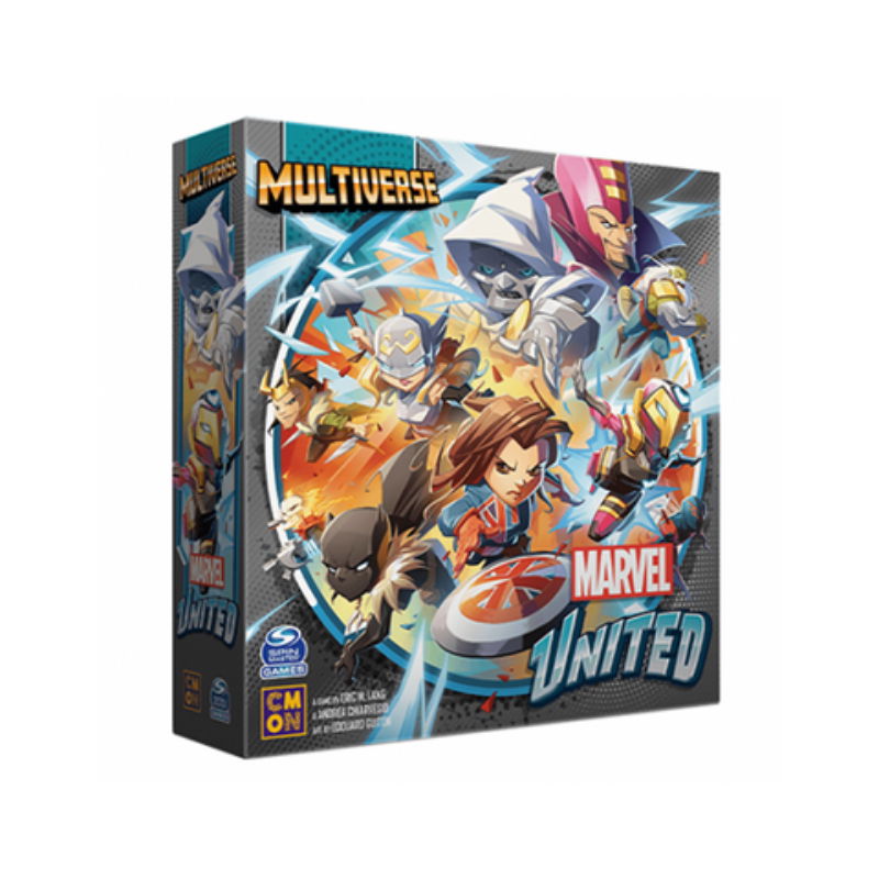 Marvel United Multiverse es una nueva caja básica para la serie de juegos Marvel United. Los jugadores deben trabajar juntos para derrotar al villano antes de que su plan se haga realidad, moviéndose por diferentes lugares a medida que avanzan. Este conjunto incluye el nuevo modo individual de comandante y presenta equipo para sus héroes y también para los héroes de cajas anteriores.