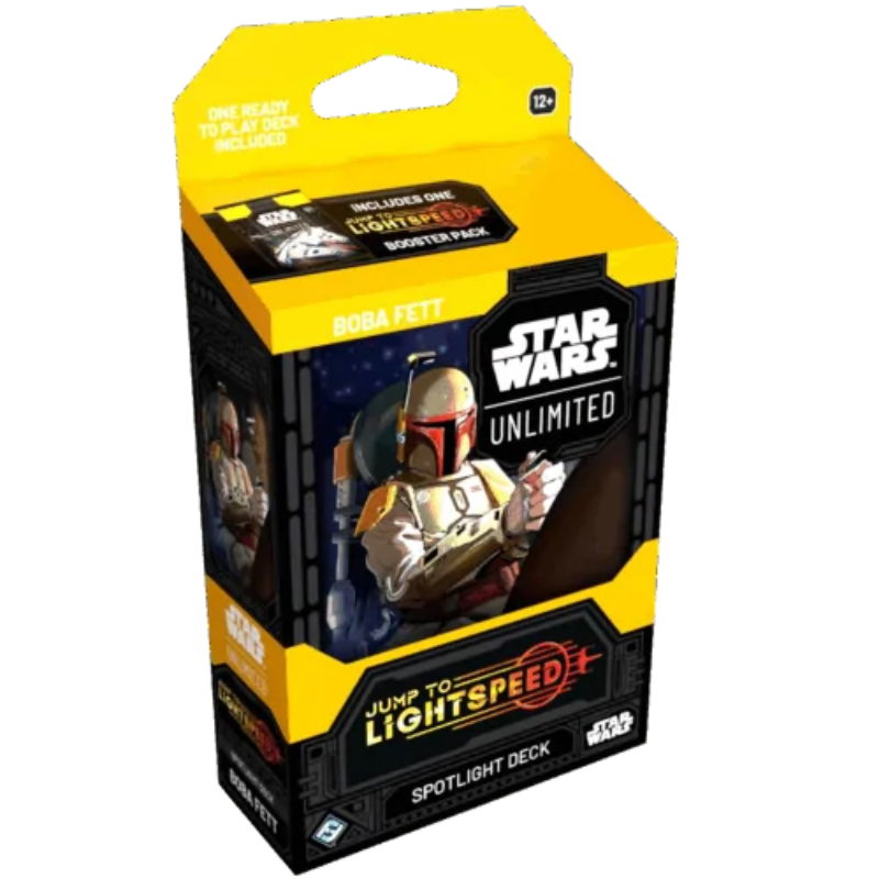 ¡Inflige daño adicional a las fuerzas enemigas con Boba Fett en este Mazo de muestra! Dentro de esta caja encontrarás una carta de líder de Boba Fett y un mazo de 50 cartas listo para empezar a jugar sacando el máximo partido de sus puntos fuertes.