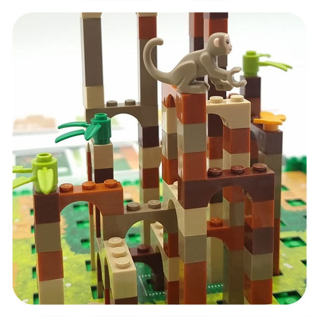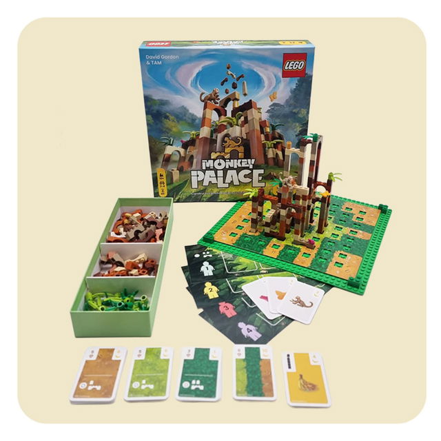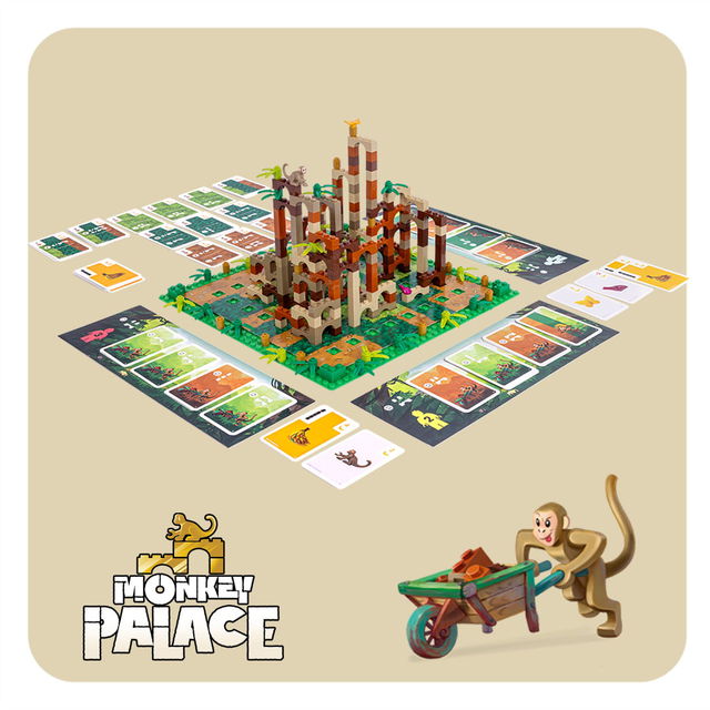 En Monkey Palace tenés que construir las mejores Escaleras para el palacio del Mono y conseguir tantas Bananas como te sea posible. Cuanto más alta sea la escalera que construyas y mas Arcos utilices en ella, más piezas de Construcción y mas Bananas conseguirás. La partida termina cuando se agoten las piezas de Costrucción.