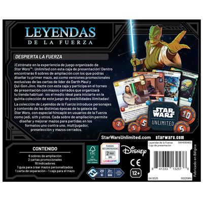 Dentro encontrarás 6 sobres de ampliación con los que podrás diseñar tu primer mazo, así como versiones promocionales exclusivas de las cartas de líder de Darth Maul y Qui-Gon Jinn. Hazte con esta caja y participa en el torneo de presentación con mazos cerrados que organizará tu tienda habitual: ¡es el medio ideal para iniciarte en la quinta colección de este juego de posibilidades ilimitadas!