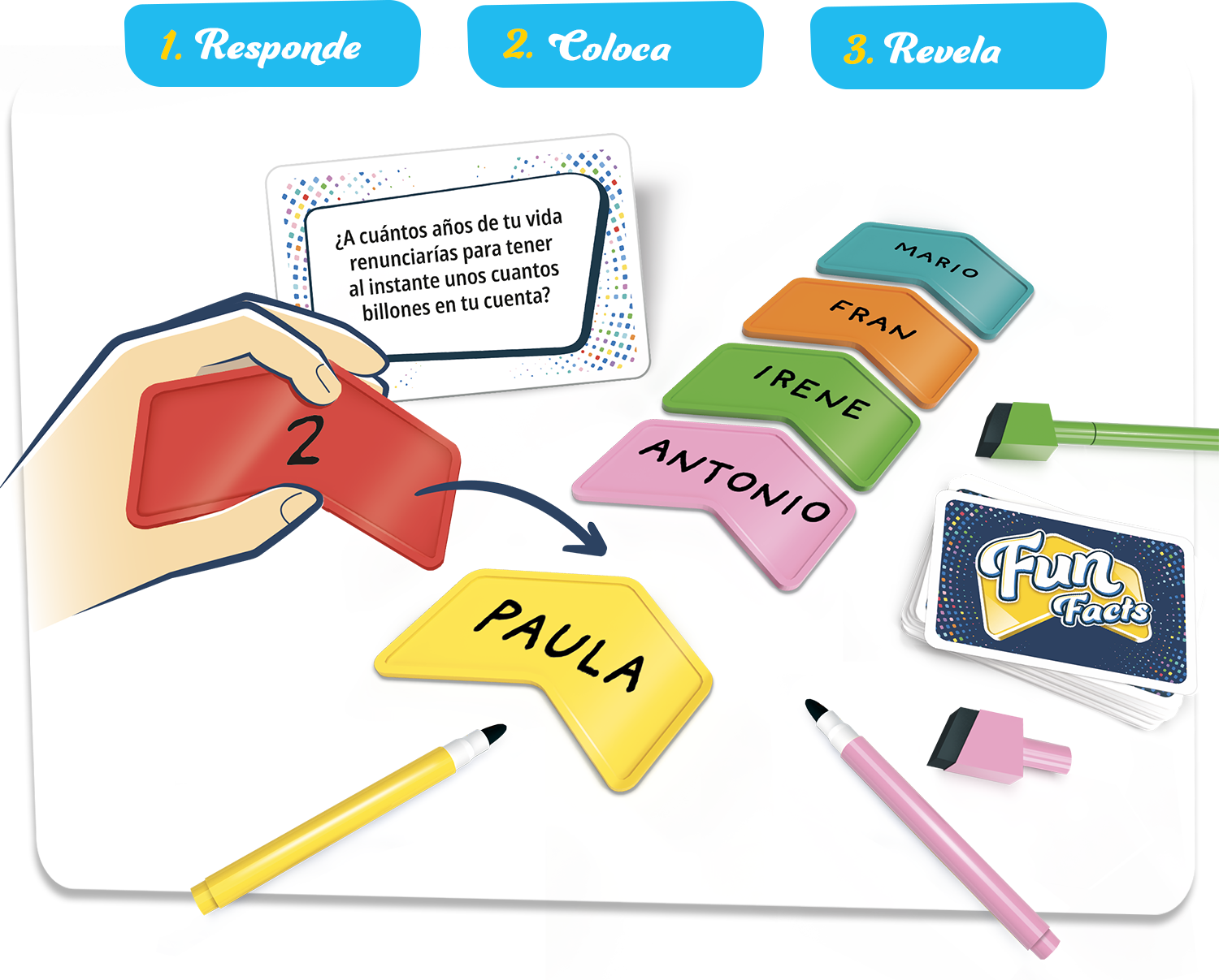 Con sus sencillas y atractivas reglas, Fun Facts te garantiza más de uno (y de dos) ataques de risa a medida que se vayan revelando toda una serie de impactantes secretos. Es el juego perfecto para conocerse los unos a los otros en un ambiente distentido y seguro. Eso sí, con Fun Facts, nunca estarás a salvo de sopresas: ¿O acaso sabes cuánts historias de amor tuvo tu abuela?