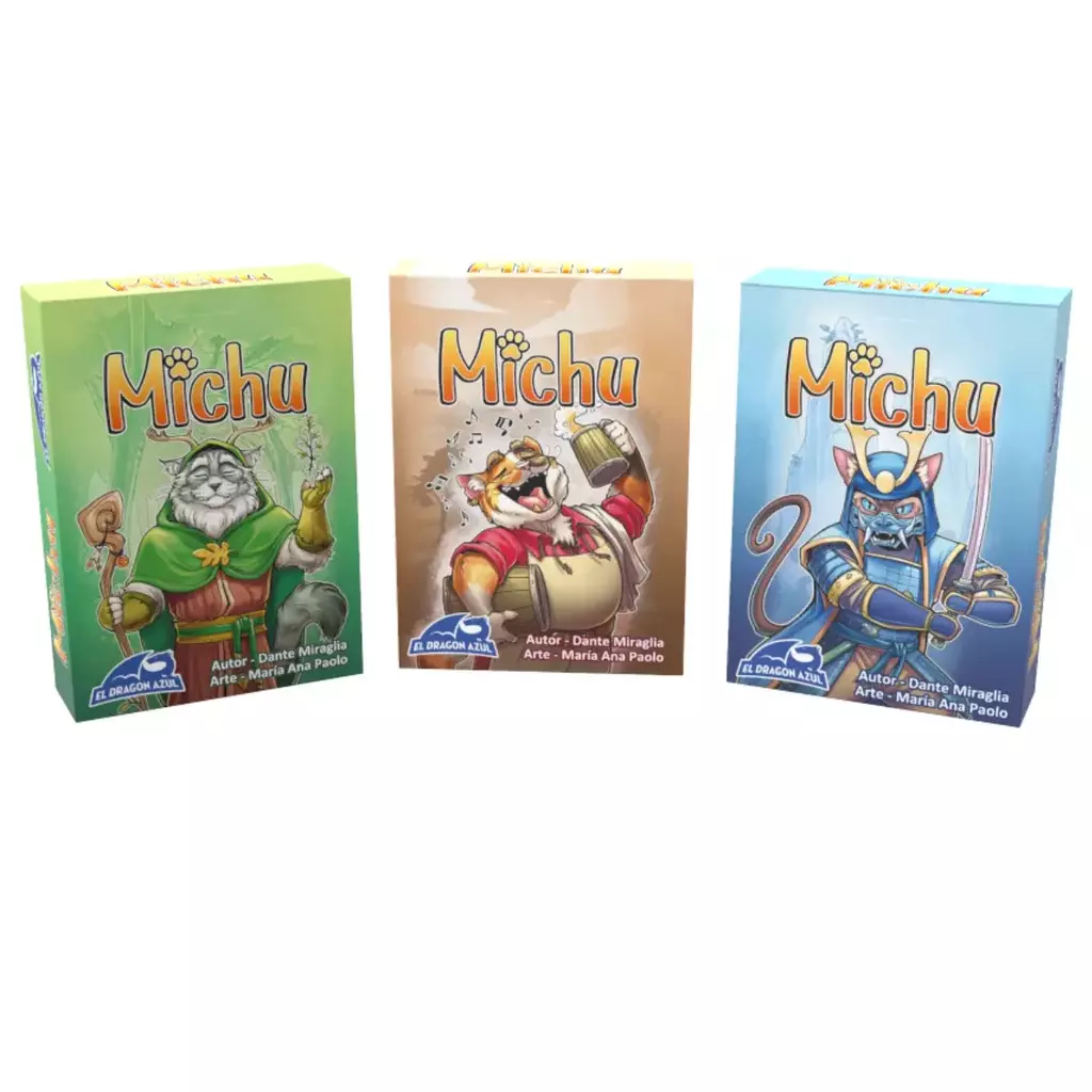 En Michu, los jugadores compiten a lo largo de varias rondas para obtener cartas de michis que sumen exatcamente 23 puntos (pueden ignorar cartas si les conviene). Cada jugador comienza con 5 cartas (no se puede alterar el orden), y se colocan 3 cartas, boca arriba, en una fila al lado del mazo.