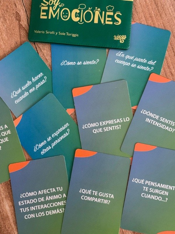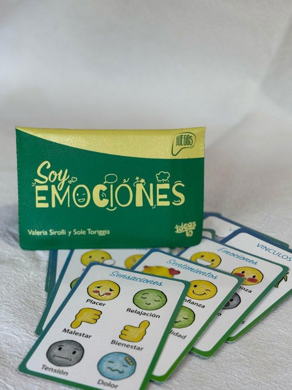 Soy Emociones es un juego de billetera que nos ayuda a fortalecer la gestión emocional. Sirve como una guía pedagógica y busca ayudar a las infancias, juventudes y adulteces. Fomenta la comunicación y nos brinda las herramientas necesarias para practicar la empatía y crear ambientes más saludables desde distintas actividades de juego. Con sus cartas, realiza preguntas disparadoras que permiten comenzar conversaciones profundas y autorreflexivas. Estas cartas también contienen ilustraciones y palabras que ayudan a identificar qué tipo de emoción sentimos dependiendo en la situación que nos encontremos.